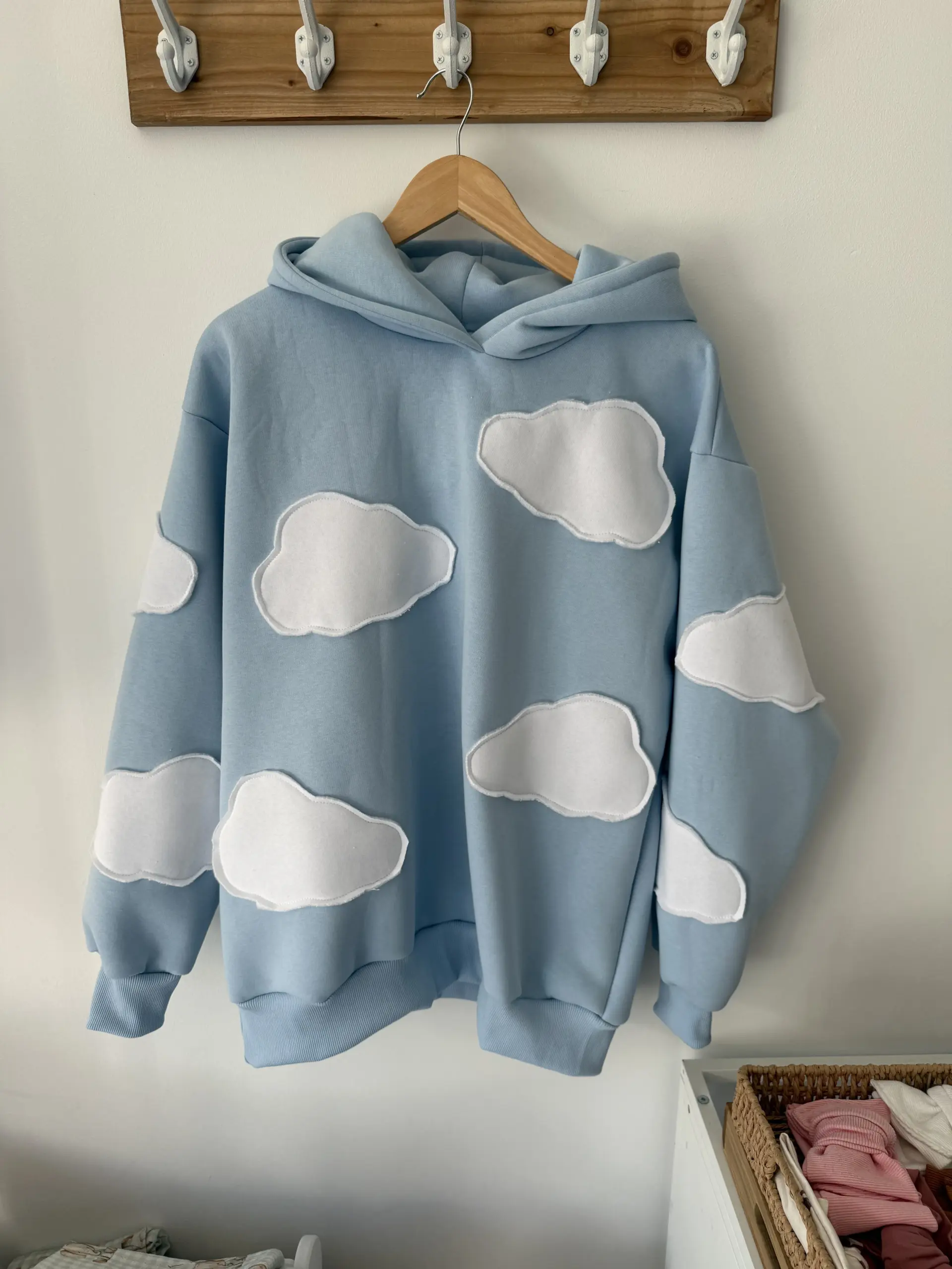 Uszyta z miękkiej, grubej dresówki – komfortowa i przyjemna w noszeniu. Oversize’owy fason nadaje jej luzu, a wyraziste aplikacje chmurek tworzą oryginalny, przyciągający spojrzenia efekt.